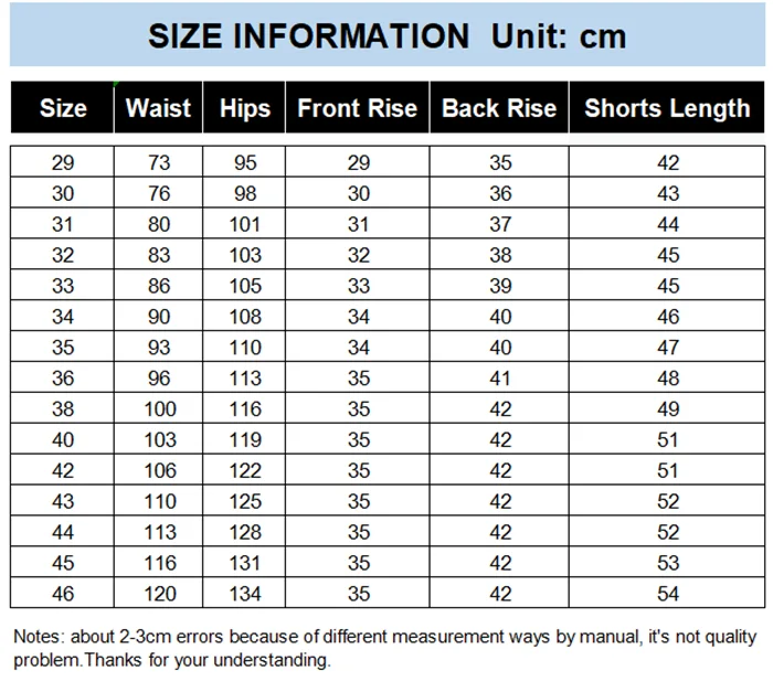Shorts Men Sizes: 29, 30, 31, 32, 33, 34, 35, 36, 38, 40, 42, 43, 44, 45, 46