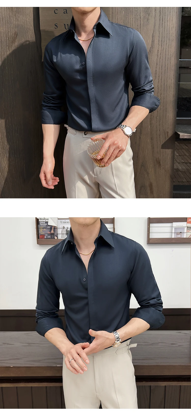 With its classic turn-down collar and smart casual style, it's perfect for both formal events and everyday wear.