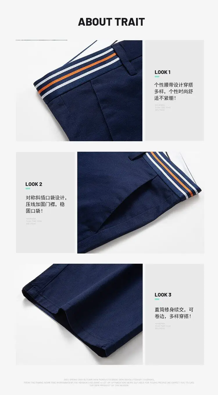 Men's Summer Casual Business Casual Elastic Five Quarter Pants
